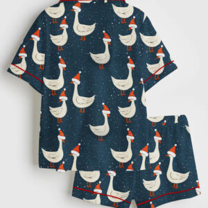 Women’s Silly Goose Hand Drawn Art Geese Farm Cute Animal Print Short Sleeve Satin Pajama Set