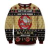This design features Santa Claus in a cheerful pose, holding a beer mug with the slogan “It’s Legal to Drink with Santa.” The dark blue knit fabric is decorated with snowflakes, reindeer and traditional holiday motifs, creating the perfect backdrop for the holiday season. Red and gold accents add to the festive atmosphere, making this sweater both fun and eye-catching. The relaxed fit and soft material provide comfort as well as style.