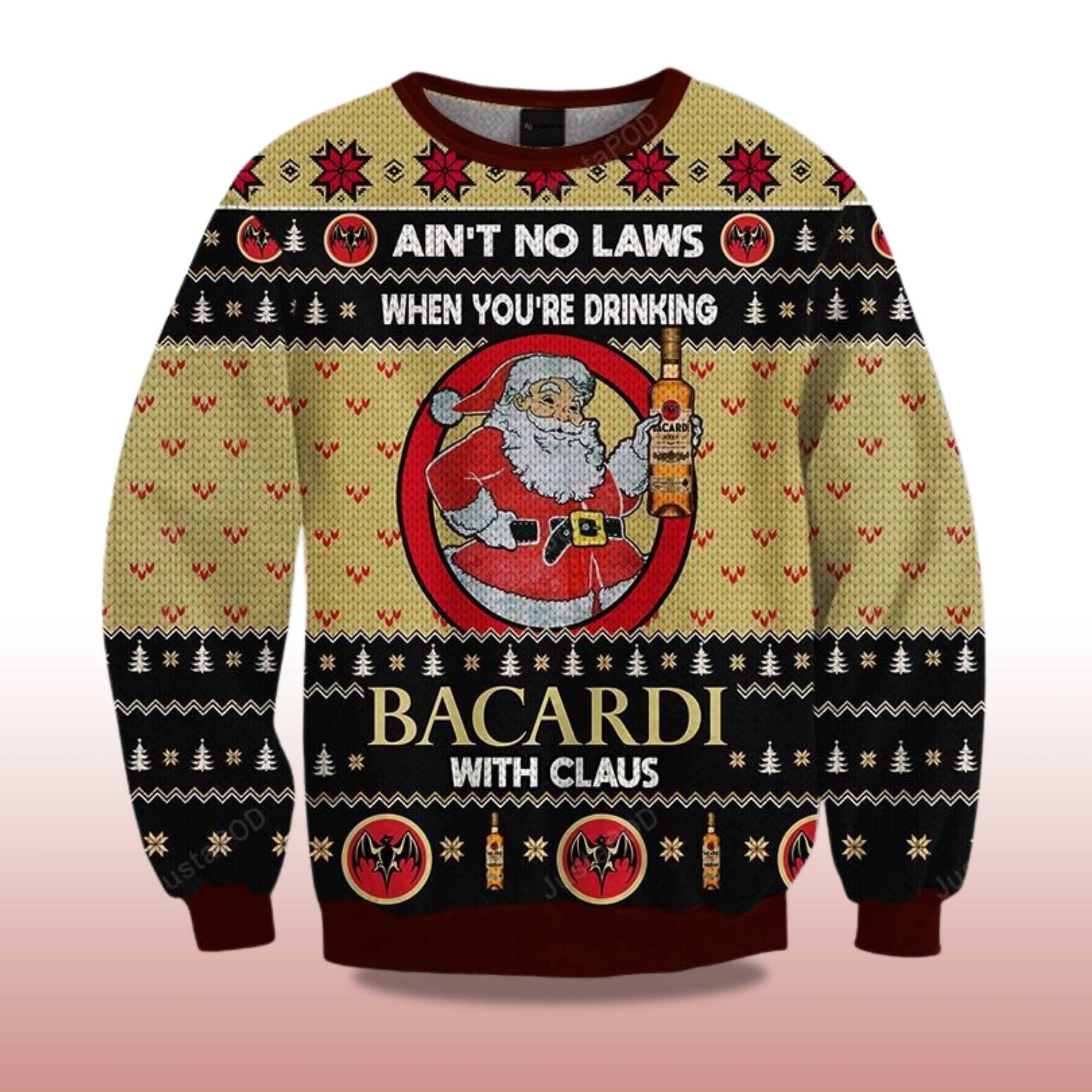 Ugly Christmas Sweater “Ain’t No Laws When You Drink Bacardi With Claus 2025” – Festive Spirit