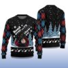 Designed with comfort in mind, this sweater combines premium soft wool with a durable finish, ensuring warmth all winter long. The humorous winter-inspired front design is decorated with falling snow details, while the back features a green pine tree against a starry sky. Red and blue Argyle sleeves add a classic festive feel. With cuffed cuffs, ribbed hem and collar, you’ll stay warm and cozy. This sweater is both stylish and surprisingly comfortable.