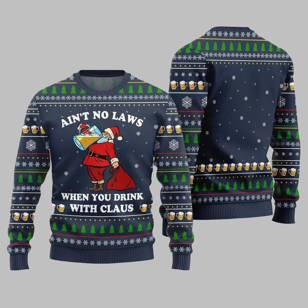 2025 Christmas Aint No Laws When You Drink With Claus Ugly Christmas Sweater – Unleash Your Holiday SpiritÂ