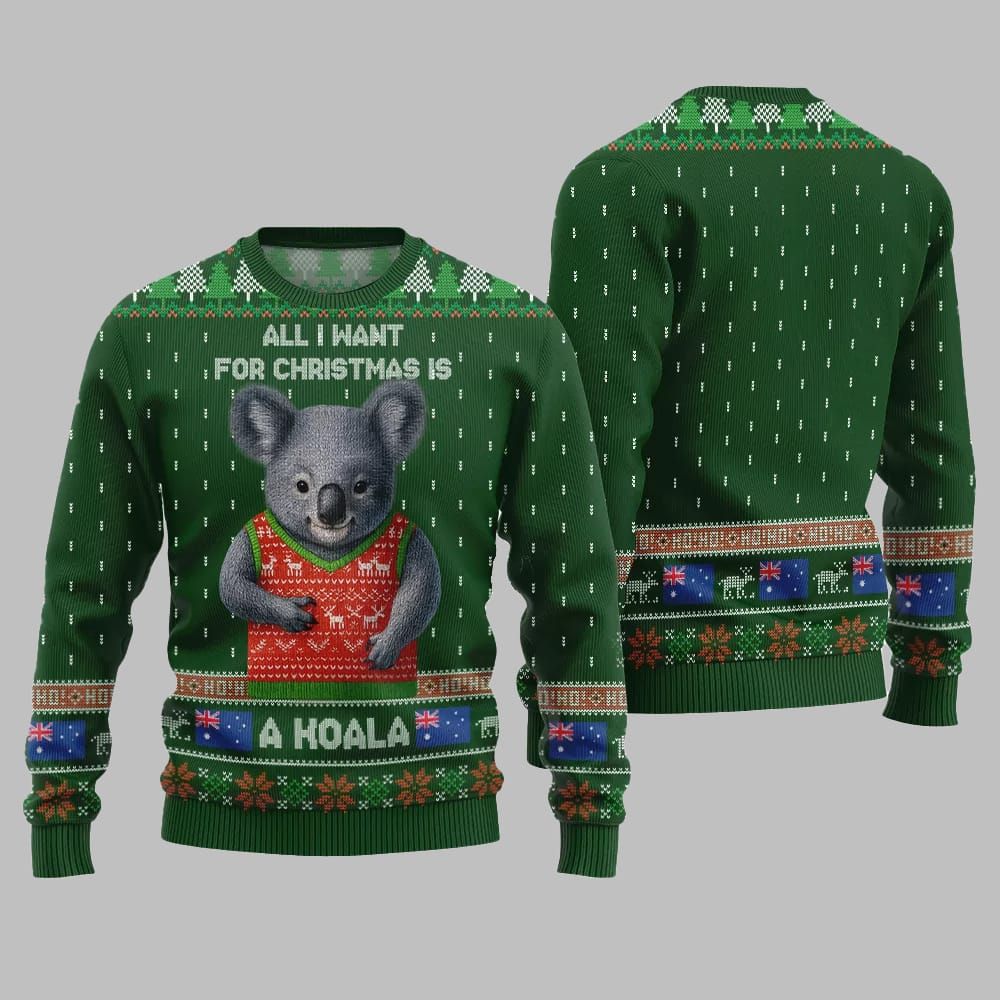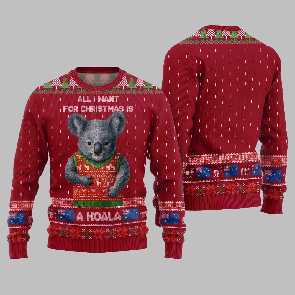 2025 Christmas All I Want For Christmas Is A Koala Ugly Christmas Sweater – Embrace Uniquely Australian Holiday Cheer