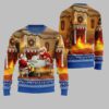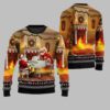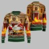 Get ready to steal the show at every holiday event with the 2025 Christmas Bold Piano Claus Ugly Christmas Sweater. The front of the sweater showcases a heartwarming scene: Santa Claus, looking jolly as ever, tickling the ivories of a brilliant white grand piano. Beside him, a cheerful Mrs. Claus is poised, ready to lead a chorus of your favorite carols. They are surrounded by the quintessential Christmas ambiance—a beautifully decorated mantelpiece with stockings, glowing candles, festive wreaths, and the soft sparkle of holiday lights. The warm, inviting glow of the fireplace creates a scene so cozy, you can almost feel the heat and hear the music.