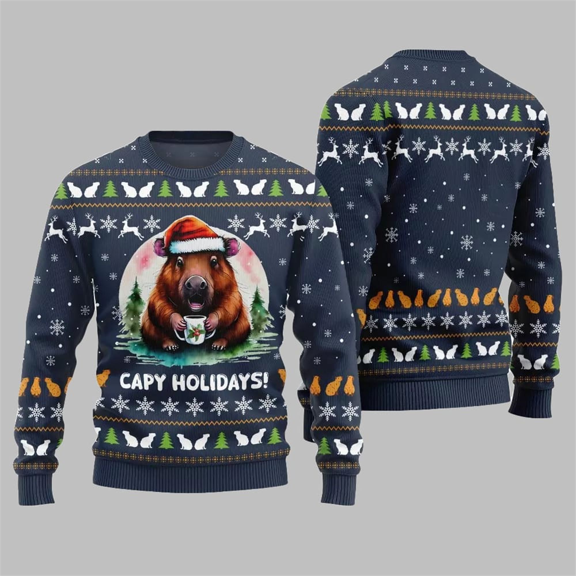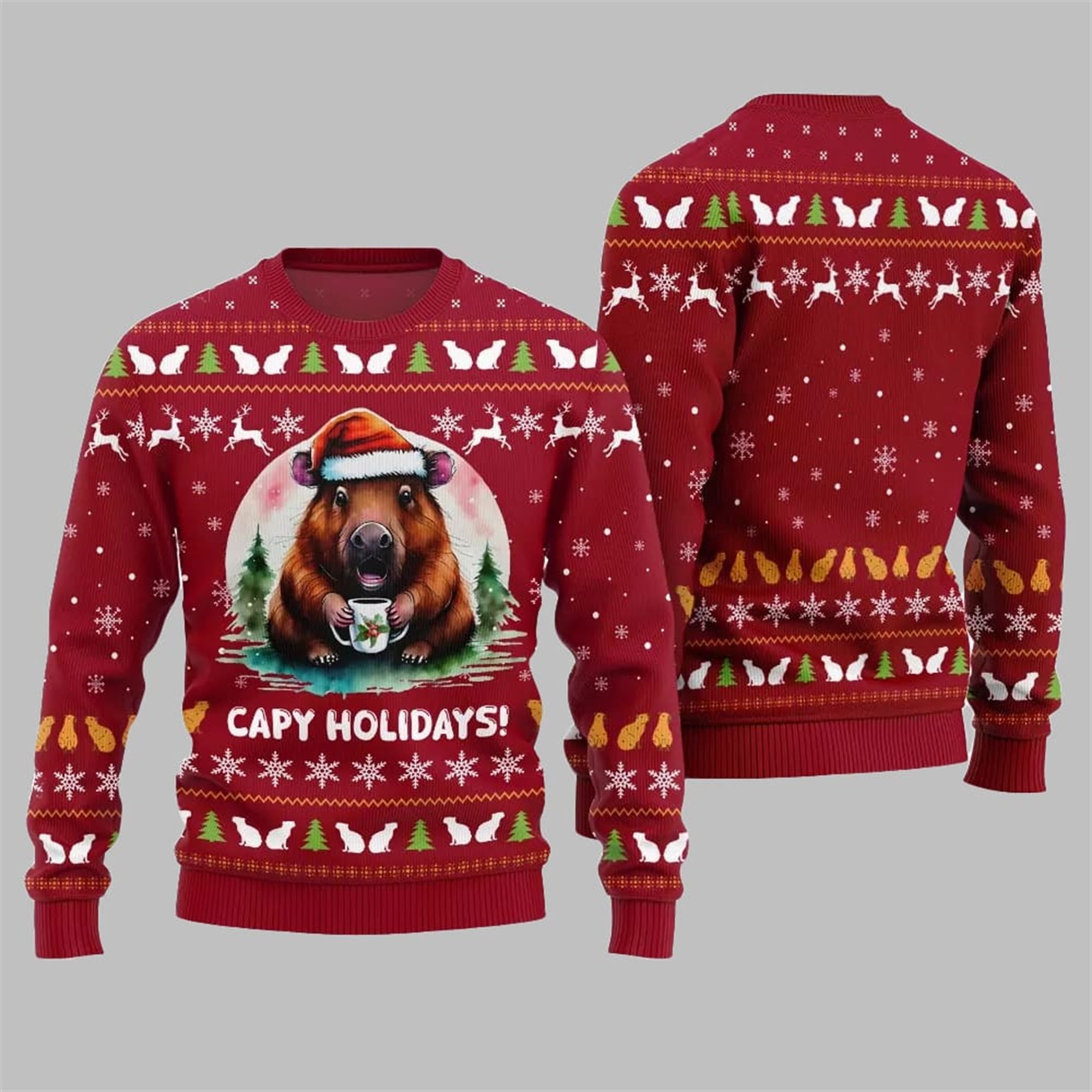 2025 Christmas Capy Holiday Ugly Sweater | Embrace the Chillest Holiday Vibe