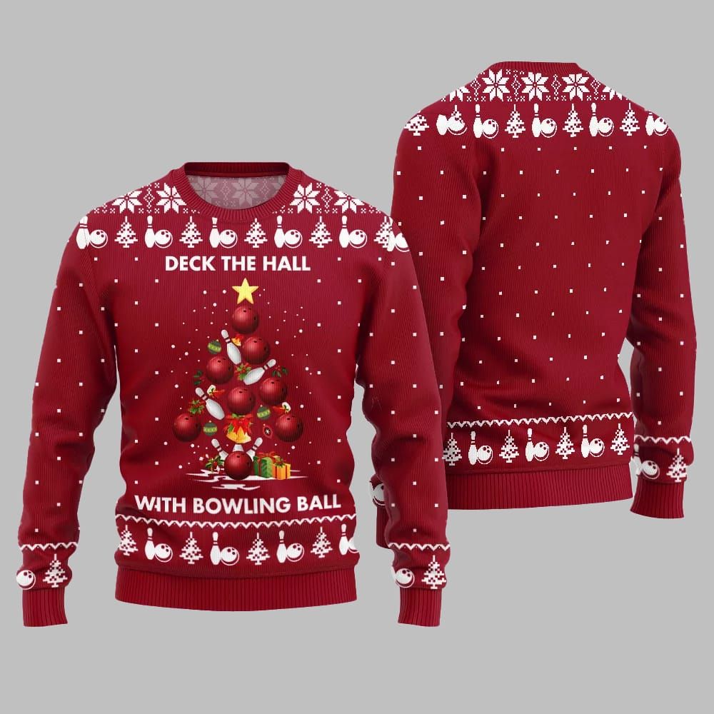 2025 Christmas Deck The Hall With Bowling Ball Xmas Sweater | Deck the Halls with Strikes and Style
