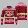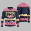 The sweater’s design is a masterpiece of festive rebellion. Front and center, a trio of confident pink flamingos commands attention. Decked out in stylish straw hats and cool sunglasses, they’re not just standing there; they’re toasting to the good times with colorful drinks in hand. Set against a backdrop of lush palm trees and a vibrant cerulean blue sky, this scene instantly transports you to a Christmas celebration on a sun-drenched beach. But look closer—delicate white snowflakes fall gently around them, perfectly blending the worlds of winter wonder and tropical escape. The iconic phrase “LET’S GO GIRLS” is emblazoned below, making it clear this sweater is all about empowerment, fun, and friendship.