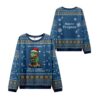 Our centerpiece is a determined-looking frog, decked out in a Santa hat and scarf, expertly navigating the season’s hustle and bustle on a hoverboard. With the battle cry “Merry Frogmas” displayed proudly above and the mischievous motto “Off to commit Festive mayhem” below, this sweater is for those who like their Christmas spirit with a side of playful chaos. The deep blue backdrop, adorned with classic Nordic patterns, snowflakes, and Christmas trees, gives it that authentic “ugly sweater” feel, while the central graphic keeps it refreshingly modern and meme-worthy.
