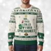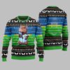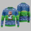 Surrounding the capybara, and continuing around the sleeves and back, are classic “ugly Christmas sweater” patterns, but with a clever football twist. You’ll find rows of miniature footballs interspersed with traditional festive motifs like snowflakes and geometric designs. The overall effect is a harmonious blend of holiday cheer and sporting passion. The ribbed cuffs, collar, and hem ensure a comfortable and secure fit, while the high-quality knit ensures warmth and durability. Every element of this design has been carefully considered to deliver a sweater that is not only visually striking but also comfortable and long-lasting.
