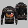 The playful text “MERRY” and “CAPYMAS” frames this hilarious scene, making it clear that this isn’t your grandmother’s Christmas sweater. The design is meticulously detailed, from the falling snow to the repeating patterns of Christmas trees and capybara silhouettes along the cuffs, collar, and hem. This sweater is a conversation starter, a mood-lifter, and your ticket to being the most memorable guest at any holiday gathering.