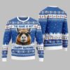 The centerpiece features a cool capybara, confidently sporting shades, with the now-famous phrase, “THE NAME IS NOT CRAPPY BARBARA.” This iconic design is complemented by classic Nordic patterns and subtle capybara figures, creating a perfect blend of traditional festive aesthetics and modern, meme-worthy humor. The sweater is available in a versatile deep navy blue, accented with crisp white and warm brown tones, making it easy to pair with any casual holiday outfit.