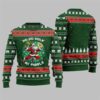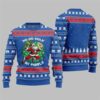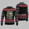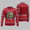 The centerpiece of this sweater is a dynamic, full-color graphic of Santa Claus himself, mid-play, decked out in his classic red suit but swapping his sleigh for a pickleball court. With a determined look, he holds a vibrant green paddle in one hand and a yellow pickleball in the other, ready to win the point. The witty slogan “HO-HO-HOLD MY PADDLE” is emblazoned above and below him, creating a clever pun that fellow players will instantly appreciate. The design is framed by classic ugly sweater patterns, including rows of snowflakes, Christmas trees, and intricate Nordic-inspired borders in a festive red, white, and navy blue color scheme, ensuring it fits right in at any holiday event.