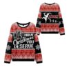 This sweater offers a complete narrative with its stunning, high-definition, double-sided print. The front commands attention with a menacing, stylized depiction of a powerful figure, framed by the bold, pixelated text, “HAVE the CHRISTMAS YOU DESERVE.” This 8-bit-inspired font adds a retro, ironic twist to the ominous message. The sleeves and borders feature a classic Nordic-style knit pattern of snowflakes and geometric shapes in a festive red, black, and white palette, perfectly executing the “ugly sweater” aesthetic.