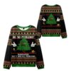 This isn’t just another tacky top; it’s a cultural statement. The centerpiece of this masterpiece is a Christmas tree that has clearly seen too much. With bloodshot eyes that scream “I’ve been wrapping presents for 72 hours” and a weary expression that rivals your own, this tree is the hero we all need.