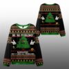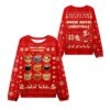 The vibrant red fabric serves as the perfect canvas for a grid of nine unique cat portraits, each donning a festive Santa hat. From a grumpy Persian to a cheerful tabby, every cat has its own personality, ensuring this sweater is as unique as you are. Accented with classic holiday motifs like snowflakes, paw prints, and tiny reindeer, this sweater masterfully blends traditional Christmas charm with modern, meme-worthy humor. The fun continues on the back, featuring a whimsical graphic of a cool cat riding in Santa’s sleigh, solidifying its status as a 360-degree festive experience.