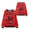 The text “MERRY KRAMPUS” and “NAUGHTY BRATS” is woven directly into the classic “ugly sweater” pattern, which is complete with traditional white snowflakes and geometric borders. This juxtaposition of the cozy, traditional knit-style aesthetic with the hilariously dark imagery is what makes this sweater a work of art. This isn’t a cheap, stiff print; it’s a high-quality, all-over-print (AOP) design that wraps around the entire garment, ensuring you look fantastic from every possible angle.