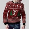 Why just attend the holiday party when you can be the holiday party? This sweater is meticulously designed for maximum impact. The vibrant red backdrop sets the perfect festive stage for the main event: Bigfoot himself, fully wrapped in glowing Christmas lights, rising up for a monstrous slam dunk. He’s not just playing hoops; he’s posterizing a poor, unsuspecting Christmas tree that doubles as the basket.