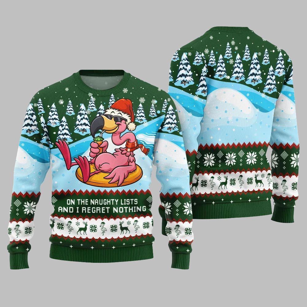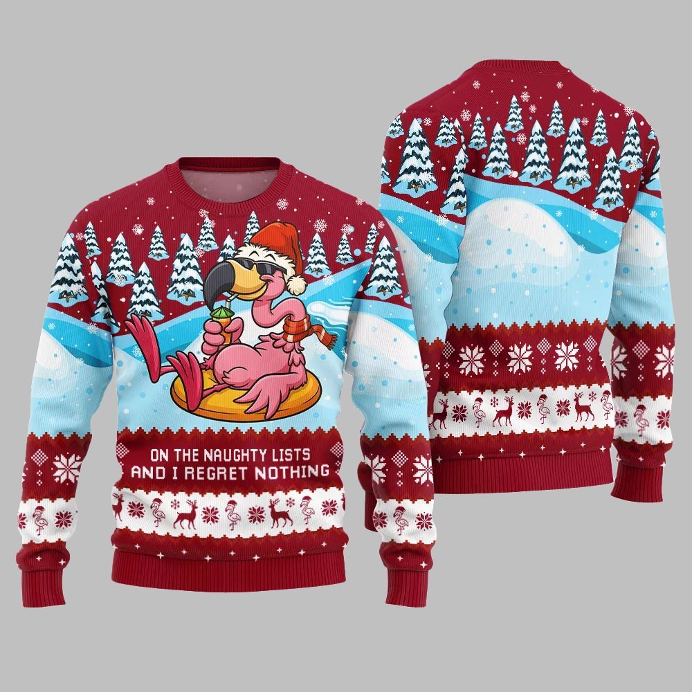 2025 Christmas Naughty List Flamingo Ugly Christmas Sweater | Embrace the Unforgettable