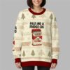 This 2025-edition ugly Christmas sweater captures the internet’s favorite inside joke with a design that’s both hilarious and brilliantly clever. The sweater features a classic, cozy-knit aesthetic with traditional snowflakes and festive Christmas trees set against a cream-colored background. But the star of the show, front and center, is the iconic “Pass Me A Fridge Cig” slogan, positioned perfectly above a redesigned cigarette pack that’s wittily filled with silver Diet Coke cans.