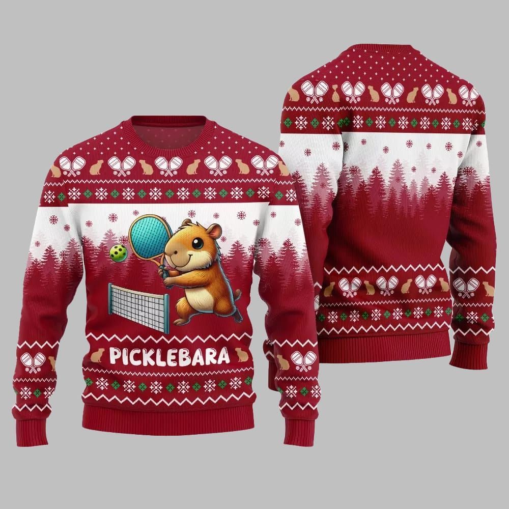 This sweater is designed for the modern holiday reveler. It’s for the pickleball player who spends their weekends at the court and the capybara enthusiast who appreciates the animal’s famously calm demeanor. It’s for anyone who loves internet culture, embraces quirky trends, and believes that holiday attire should be as unique as they are. Whether you’re attending an ugly sweater party, enjoying a casual Christmas Eve with family, or looking for a festive outfit for a holiday tournament, this sweater guarantees you’ll stand out and spread smiles.