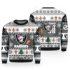 The front of the sweater is pure holiday gold. The iconic Raiders shield logo is front and center, given a festive twist with a classic Santa hat. The design is woven in the team’s signature silver and black, surrounded by a festive array of holiday-themed graphics. You’ll find repeating patterns of gingerbread men, classic Nordic snowflakes, and cheerful Christmas trees, all meticulously integrated with secondary Raiders helmet logos on the sleeves and torso.
