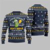This design perfectly captures the zeitgeist of pickleball culture with its clever wordplay and eye-catching graphics. The central design features a determined (and adorable) cartoon pickle, complete with a sweatband, ready for action in front of a pickleball net. The bold text reads, “IF YOU ARE LOOKING FOR A SOFT SERVE GO GET ICE CREAM,” a cheeky inside joke that will have fellow players laughing out loud. This sweater communicates that you’re serious on the court but love to have fun off it. Its vibrant red backdrop is adorned with classic “ugly sweater” patterns like snowflakes, pickleballs, and paddles, seamlessly blending timeless holiday aesthetics with modern athletic humor.