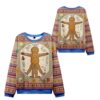 This isn’t your grandmother’s Christmas sweater. It’s a modern, vibrant, all-over-print sweatshirt that brilliantly parodies Leonardo da Vinci’s “Vitruvian Man.” But instead of a man, our hero is a perfectly baked gingerbread cookie, captured in perfect anatomical (and delicious) detail. The intricate design features a complete “blueprint” for festive fun, with labels pointing to “Gingerbread Dough,” “Icing Glaze,” “Gumdrop Buttons,” and other critical components. It even includes helpful baking instructions like “Bake at 350°F,” making it the ultimate tribute to the season of sweets.