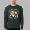 This isn’t your average, scratchy, over-the-top “ugly” sweater. It’s a premium, comfortable, dark green sweater featuring a beautifully rendered, vintage-style winking Santa. With a knowing glance and a festive sprig of holly in his cap, Santa raises a perfectly poured, creamy-topped pint of dark stout.