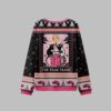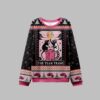 Featuring two charming opossums joyfully interacting with a festively decorated trash can under a whimsical moon and star-filled sky, this design is both humorous and endearing. The intricate patterns and vibrant pink accents on a classic black backdrop create a visually striking and memorable look that perfectly blends the “ugly sweater” aesthetic with a touch of playful artistry.