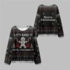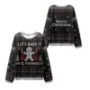 Our sweater captures the heart of the holidays with a playful twist. The centerpiece is a cheerful, perfectly-baked gingerbread man, flanked by festive candy canes and neatly wrapped presents. Above and below this delightful scene is the clever pun, “LET’S BAKE IT UNTIL YOU MAKE IT,” a humorous nod to the popular mantra that’s sure to resonate with go-getters and aspiring bakers alike. The design is framed by intricate, Nordic-inspired patterns featuring reindeer, snowflakes, and Christmas trees, giving it that classic “ugly sweater” aesthetic with a clean, modern finish. The fun doesn’t stop there—the back of the sweater features a warm “Merry Christmas” greeting, ensuring you spread cheer from every angle.