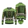The design delves deeper into the lore with rows of spectral, ghost-like figures along the lower torso, reminiscent of Canoptek Wraiths or the tormented spirits of the Flayed Ones, all cleverly integrated with classic Nordic snowflake patterns. The vibrant green primary color is a nod to the eerie glow of Necron gauss weaponry, ensuring you stand out in any crowd. This is the ultimate conversation starter for any holiday party or gaming convention.