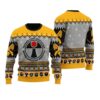 Every inch of this sweater is a tribute to the Tau Empire. The sweater’s centerpiece is the unmistakable, bold crest of the T’au, rendered in vibrant red, black, and white, making your allegiance clear. Encircling this powerful symbol are inscriptions written in the T’au Lexicon, adding a layer of authenticity that devoted fans will immediately recognize and appreciate. The design masterfully incorporates a classic “ugly sweater” aesthetic with pixelated snowflakes and Nordic-inspired geometric patterns, seamlessly blended with repeating Tau icons and symbols along the hem and cuffs.