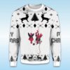 - Classic Ugly Sweater Vibe: The high-contrast black and white pattern with reindeer, trees, and fair isle elements gives it the perfect “ugly” holiday aesthetic.