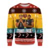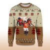 The sweater features Justin Simmons in a variety of action poses, against a backdrop of reindeer, snowflakes, and a Christmas tree. The warm blend of beige, brown, and red tones provides a cozy, seasonal feel, while the striking orange sweater keeps the Broncos theme going. Made from a soft wool blend, the sweater is comfortable, warm, and durable, while a tapered hem and crew neck complete the look with classic holiday style.