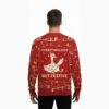 The Overstimulated But Festive sweater captures the emotional whirlwind of holiday gatherings. With a wide-eyed duck surrounded by snowflakes and tangled lights, it humorously reflects the sensory overload many experience during crowded, high-energy celebrations.