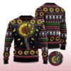 The design features a vibrant yellow sunflower made up of tiny skulls, surrounded by festive red, green, black and white motifs. The contrast of life and darkness gives the sweater a bold, modern look that will stand out from the crowd. The ribbed sleeves and hem provide a comfortable feel, while the soft knit keeps you warm all winter long. Every detail from the vibrant sunflower petals to the intricate skull motif is crafted with high-definition printing technology for long-lasting color and clarity.