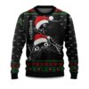 This sweater features a classic black base, accented with a festive print. Snowflakes, reindeer, and a Christmas tree decorate the top and bottom, highlighting the elf illustration in the middle. Each elf is playfully designed, adding a touch of personality and humor. The knit fabric keeps you warm on chilly nights, while the ribbed hem and cuffs provide a secure fit. Designed with a durable print and sturdy seams, this sweater will see you through many holiday seasons.