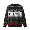 Bold, cheeky, and unapologetically festive—this What Doesn’t Kill You Disappoints Me Ugly Christmas Sweater blends classic holiday motifs with biting sarcasm. Perfect for rebels, misfits, and anyone tired of sugarcoated cheer. Make a statement that sparks laughter and conversation.
