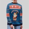 The “Merry Swishmas” sweater is designed for the person who checks scores as often as they check their gift list. The vibrant, deep-blue base sets the stage for a truly unique holiday scene. Front and center is the man himself, Santa Claus, but not as you’ve ever seen him. He’s traded his sack of toys for a basketball, mid-dribble, ready to dish out assists and festive cheer. The text “MERRY SWISHMAS” is emblazoned across the chest, a clever pun that will get nods of approval from fellow fans.