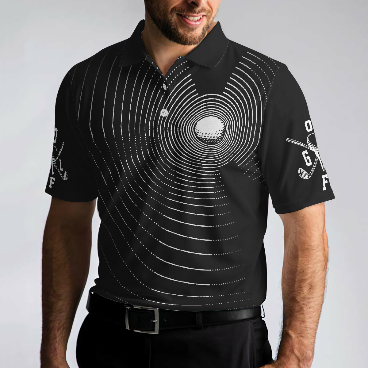 3D Effect Gold Ball And Golfer All Over Print Polo Shirt For Men, Best Golf Shirt For Men