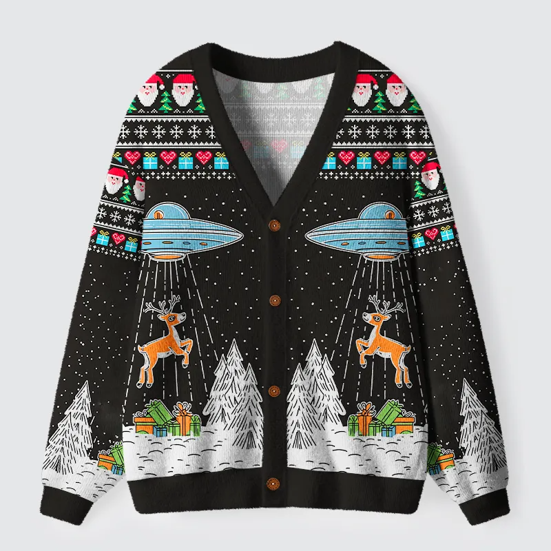 Subversive Chic: The Unforgettable “Alien Christmas Abduction Ugly Cardigan Sweater”