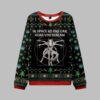 The design masterfully blends yuletide cheer with deep-space terror. Traditional Nordic patterns are cleverly reimagined with sci-fi elements, including silhouettes of Christmas trees, what could be interpreted as stylized Facehuggers, and geometric patterns reminiscent of the Weyland-Yutani Corporation’s aesthetic. The striking color palette of deep black, ominous green, warning yellow, and festive red creates a visually arresting piece that is unmistakably festive yet true to its terrifying roots.