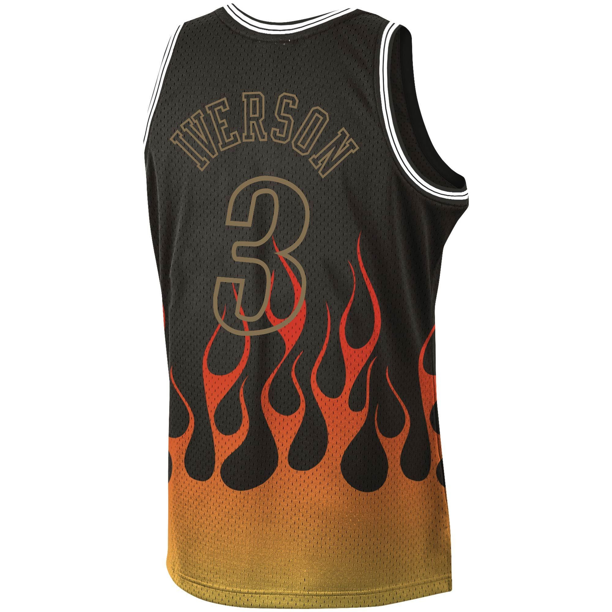 Allen Iverson Philadelphia 76ers Mitchell & Ness 2000-01 Hardwood Classics Flames Swingman Basketball Jersey – Black – JS598