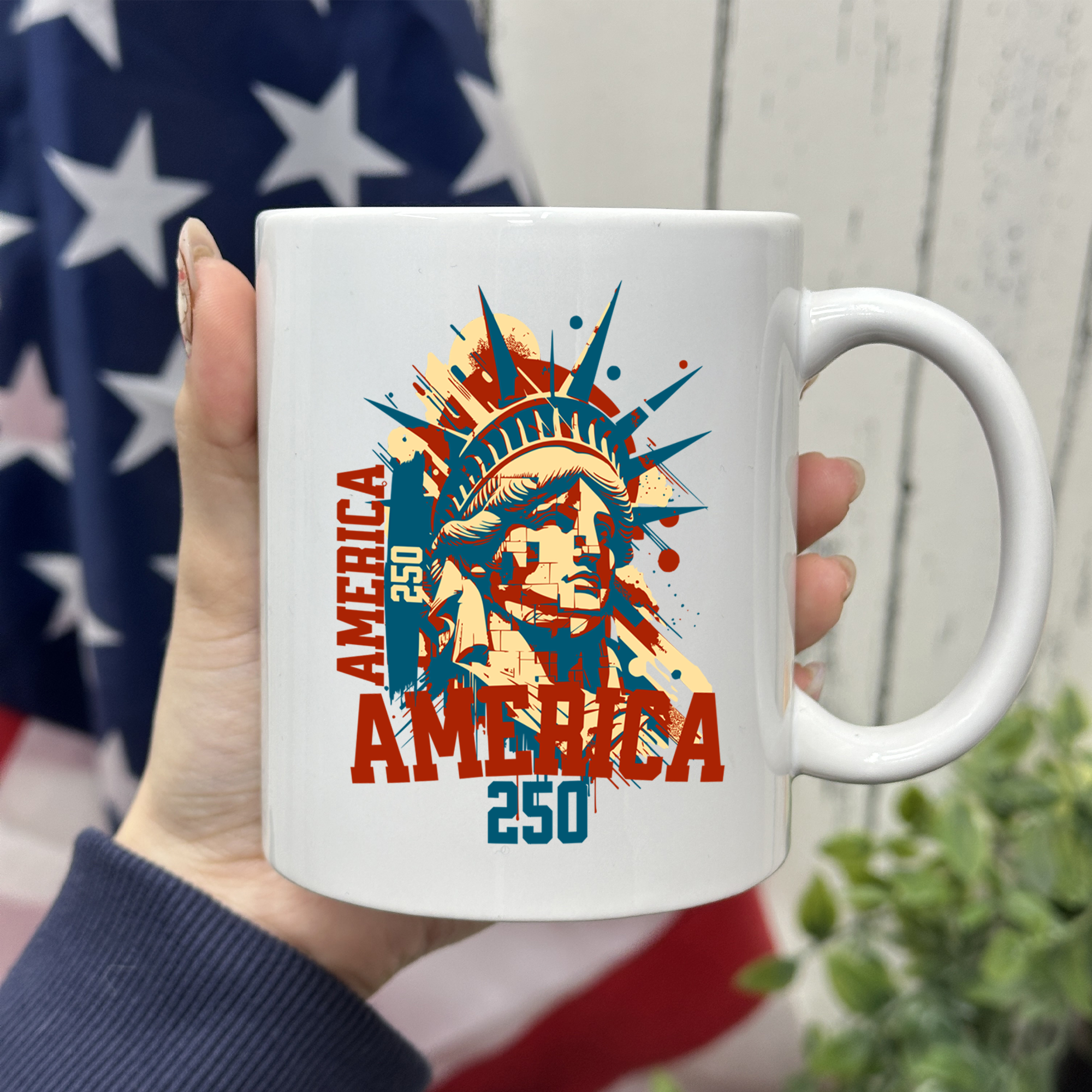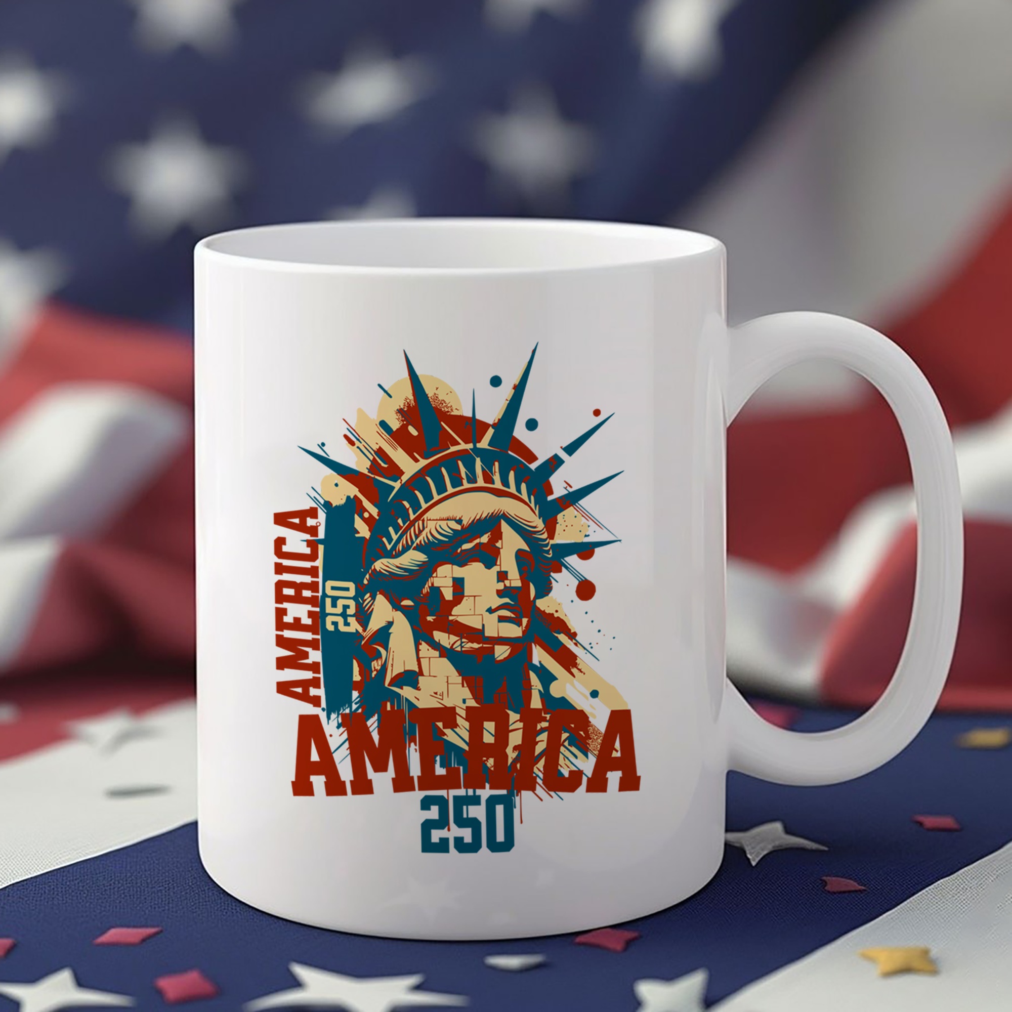 Celebrate 250 years of freedom with this striking white mug, designed to honor America’s rich heritage. Perfect for your morning coffee or tea, its durable ceramic build ensures lasting use while showcasing a proud message. Start your day inspired and show your patriotic spirit with every sip.
