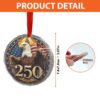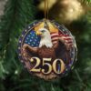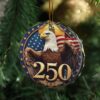 America 250 Years Bald Eagle Glass Ornament, America 250 Anniversary, Happy 250th Birthday USA, Patriotic 4th Of July Glass Ornament For Christmas Decor