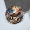 Celebrate the Semiquincentennial of the United States (1776–2026) with this stunning glass ornament featuring a majestic bald eagle framed by golden accents, the American flag, and a bold “250†centerpiece. Symbolizing strength, freedom, and heritage, this design is perfect for commemorating this once-in-a-lifetime milestone.
