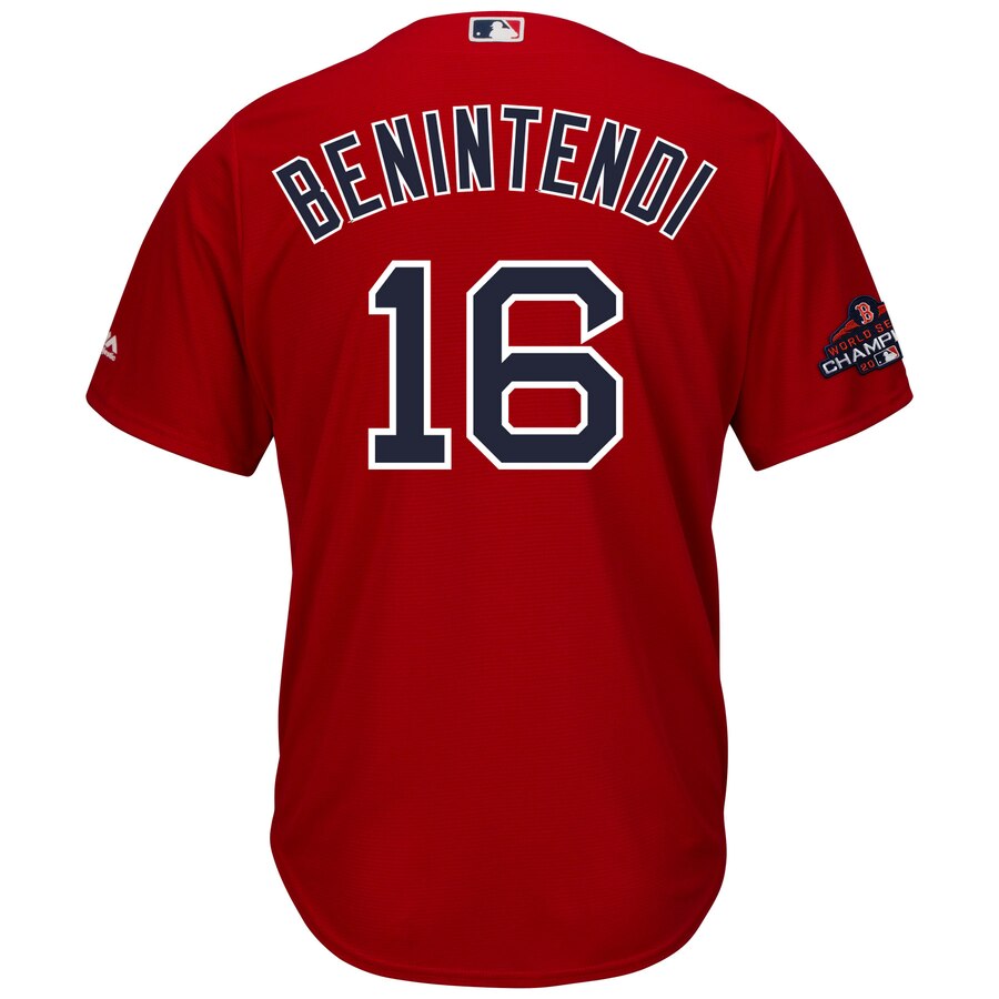 Andrew Benintendi Boston Red Sox Majestic 2018 World Series Champions Team Logo Player Baseball Jersey – Scarlet