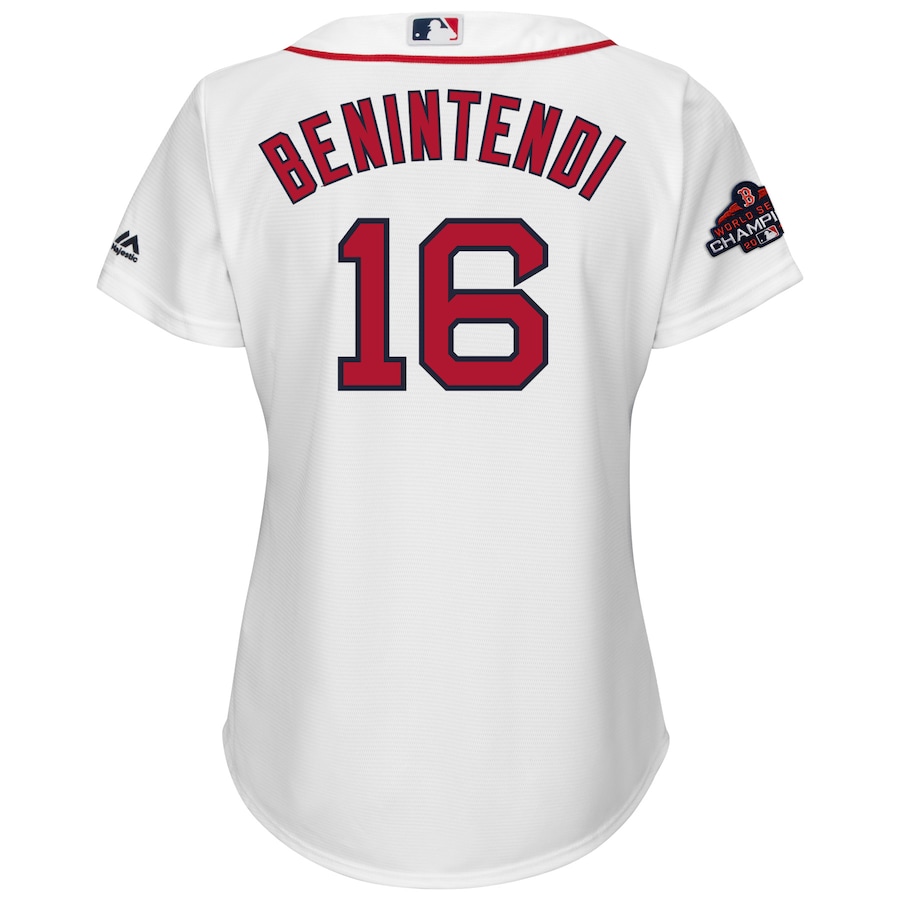 Andrew Benintendi Boston Red Sox Majestic Women’s 2018 World Series Champions Team Logo Player Baseball Jersey – White