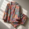 - Short-sleeve, button-front design with a turn-down collar, chest pocket, and contrast piping—classic and stylish for sleepwear, loungewear, or hosting guests.