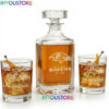 Full Bar Set: Includes one (1) premium 750ml glass decanter with a faceted glass stopper and two (2) classic 10oz rocks glasses, perfectly weighted for neat pours or spirits on the rocks.