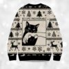 The Become Ungovernable Black Cat Biting Christmas Ugly Sweater brings playful rebellion to winter fashion. Featuring a ferocious black cat clinging to your arm, surrounded by classic holiday motifs like trees, snowflakes and deer, the sweater is a mix of cozy tradition and mischief. This sweater is perfect for anyone who loves a little humor, bold statements and a little levity around the festive season.